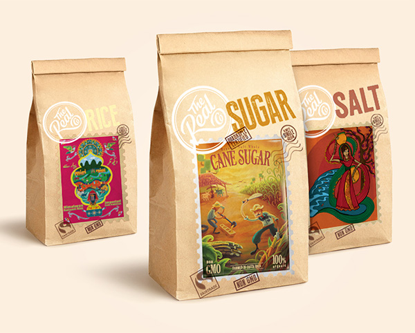 因此這款包裝設(shè)計(jì),采用了很多農(nóng)民插畫設(shè)計(jì)的風(fēng)格,配合天然土黃紙張的顏色,推出有機(jī)糧食的品質(zhì)。