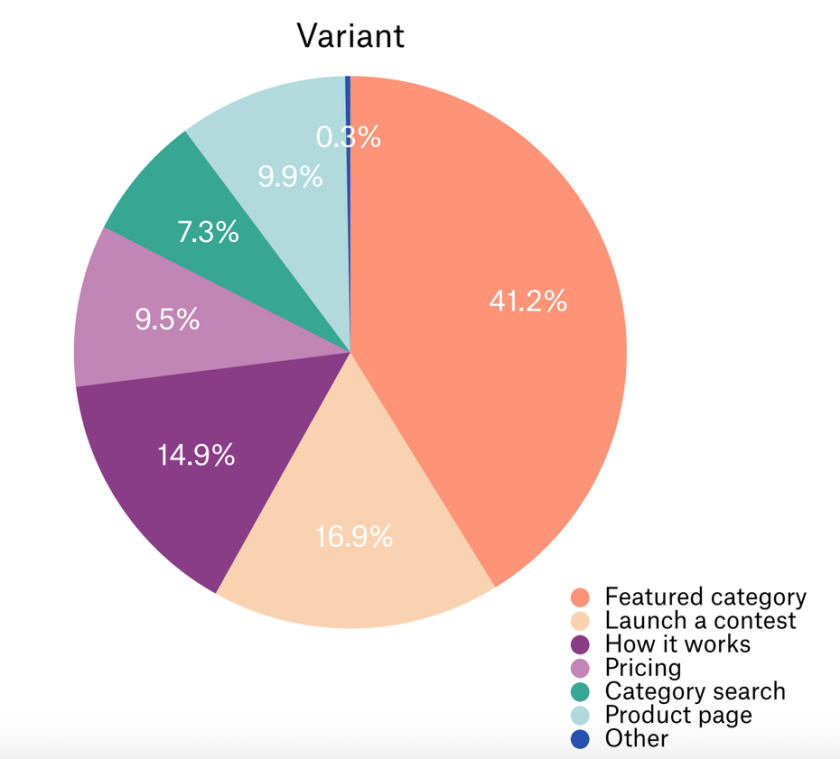 我們測試了新版主頁,添加了一個關(guān)于我們客戶的視頻和副本,并將其與我們的原始版本(控件)進行了比較。我們發(fā)現(xiàn)帶有視頻的版本將更多流量重定向到我們的精選類別頁面,但遠離我們的啟動頁面,這是我們的一個關(guān)鍵轉(zhuǎn)換頁面?;氐嚼L圖板。