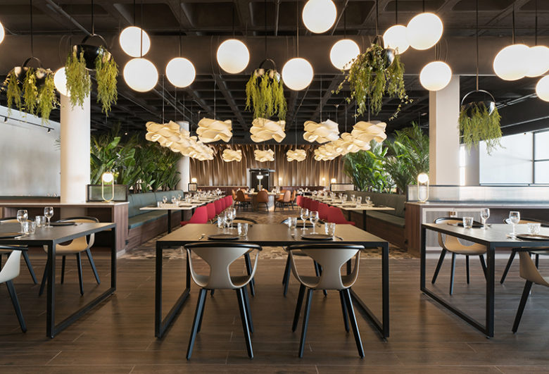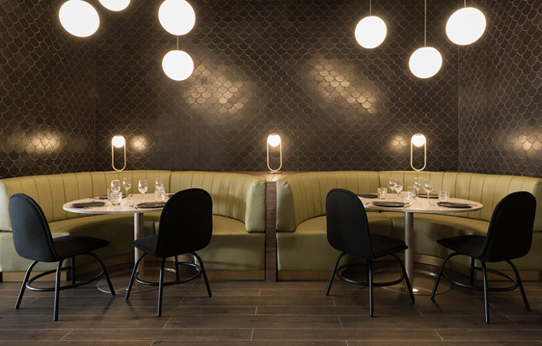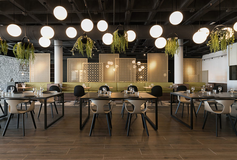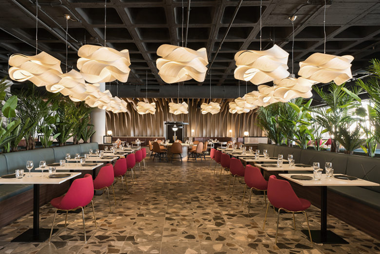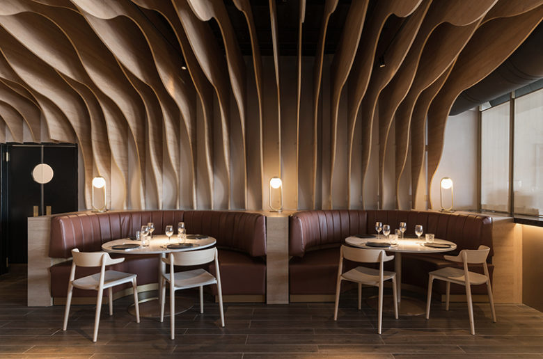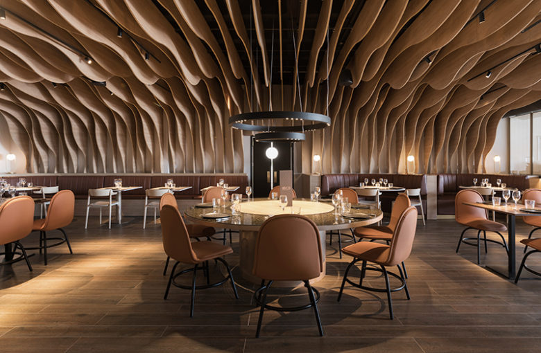 將DRAGON轉(zhuǎn)變?yōu)镸ILLENARIAN DRAGO,創(chuàng)造夢幻和夢想的餐飲空間設(shè)計??臻g頂部的設(shè)計,用了無數(shù)不規(guī)則的木板豎立在頂部,非常獨特又具有很強(qiáng)的吸音效果。上??臻g設(shè)計公司案例分享。