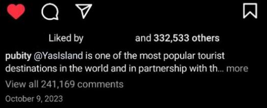 雖然這只是一個(gè)普通的 Instagram 營(yíng)銷活動(dòng),或者只是一篇吸引人的帖子,但我還是決定將其列在前 10 名中,因?yàn)檫@是我在社交媒體中發(fā)現(xiàn)的最愚蠢和最成功的營(yíng)銷策略之一。Pubity 是一家擁有 3650 萬粉絲的 Z 世代社交媒體出版商,他們喜歡表情包和流行新聞。亞斯島是阿聯(lián)酋阿布扎比的一個(gè)島嶼,是一個(gè)很棒的旅游景點(diǎn)。他們手牽手,在 Instagram 上做了一個(gè)純粹的營(yíng)銷噱頭,但有一個(gè)陷阱。