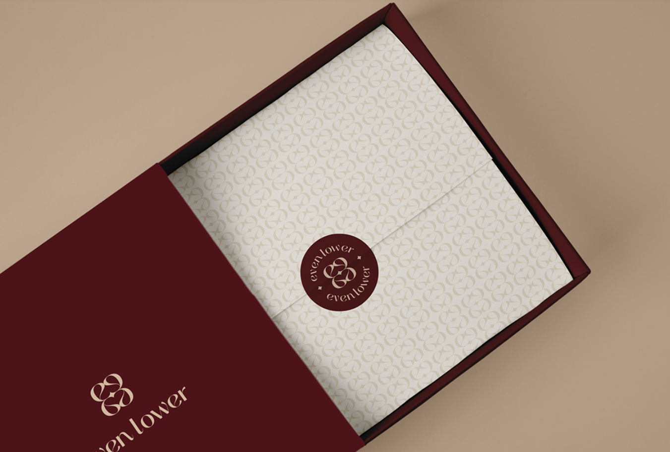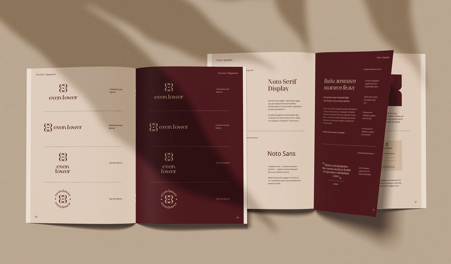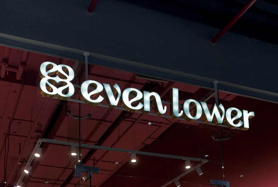 Even lower 品牌的視覺風格基于獨特的標志logo,該標志logo設(shè)計用作布局中的裝飾元素。