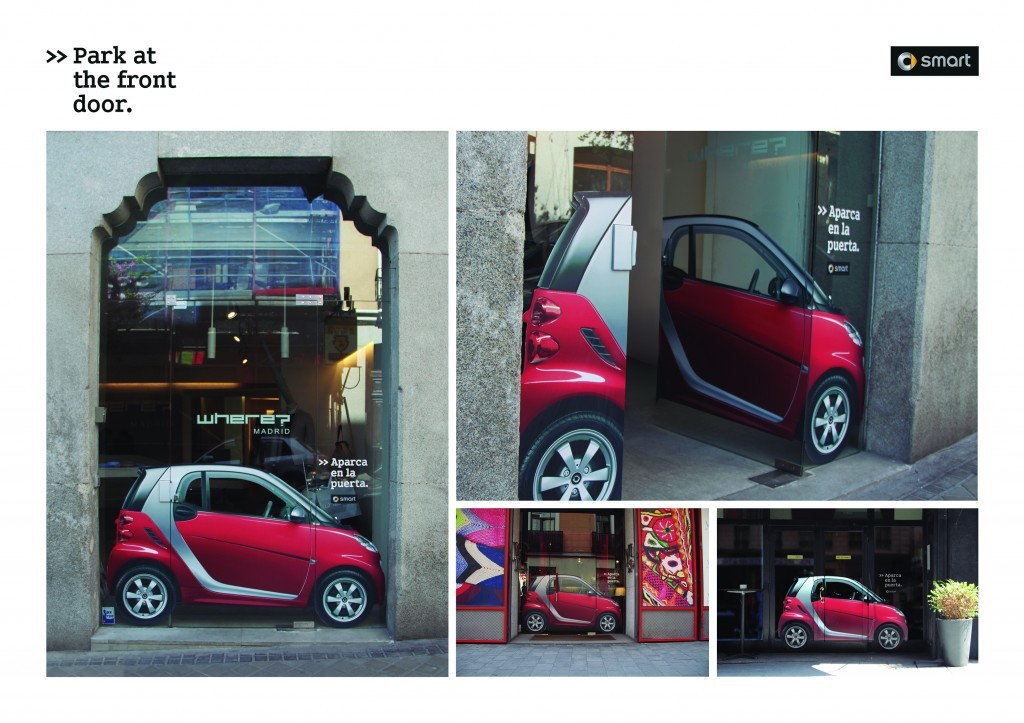 在城市某個(gè)狹小玻璃櫥窗里,突然看到Smart汽車(chē)等比例尺寸玻璃貼戶(hù)外廣告,你會(huì)不會(huì)印象很深刻,對(duì),這就是Smart汽車(chē)等比例尺寸的玻璃貼廣告,廣告的意思是告訴車(chē)主,在車(chē)位稀缺的城市,也許只有Smart才能找到這么多適用的停車(chē)位。是一個(gè)很好的情景戶(hù)外廣告創(chuàng)意方式。來(lái)自尚略廣告上海廣告策劃公司 http://m.907632.com/ 分享。